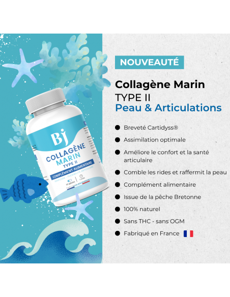 - Type de collagène : Type II (le plus assimilable pour articulations et peau)